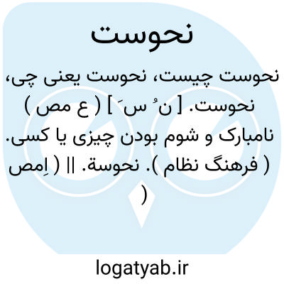 نحوست. [ ن ُ س َ ] ( ع مص ) نامبارک و شوم بودن چیزی یا کسی. ( فرهنگ نظام ). نحوسة. || ( اِمص ) بداختری. نافرجامی. شآمت. بدبختی. نامبارکی. ( ناظم الاطباء ). ادبار. شومی. نحسی. نحوسة: