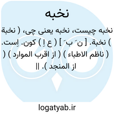 ( نخبة ) نخبة. [ ن َ ب َ ] ( ع اِ ) کون. اِست. ( ناظم الاطباء ) ( از اقرب الموارد ) ( از المنجد ). || دوستکانی. کلمه ای است عراقی. ( از مهذب الاسما ). و قال بعضهم: النخبة؛ الشربة العظیم، یعنی دوستگانی. ( منتهی الارب ). || ( ص ) جبان. ( اقرب الموارد ) ( المنجد ). مرد بددل. ( منتهی الارب ) ( آنندراج ). مرد ترسو و جبان. نُخَبة. ( ناظم الاطباء ).