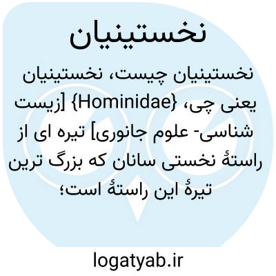 {Hominidae} [زیست شناسی- علوم جانوری] تیره ای از راستۀ نخستی سانان که بزرگ ترین تیرۀ این راستۀ است؛ میمون های این تیرۀ توانایی مغزی چشمگیری دارند