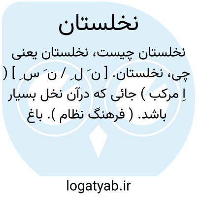 نخلستان. [ ن َ ل ِ / ن َ س ِ ] ( اِ مرکب ) جائی که درآن نخل بسیار باشد. ( فرهنگ نظام ). باغ خرما. ( آنندراج ). جای انبوه از خرمابنان. خرستان. مخستان. مغستان. ( ناظم الاطباء ). خرماستان. باحة. عقدة: