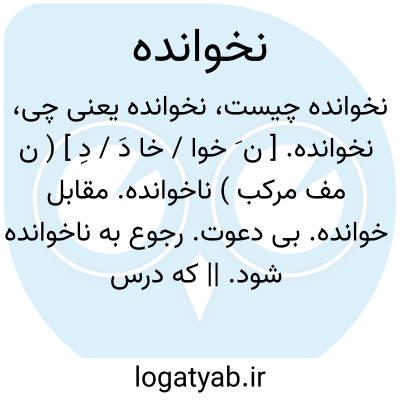 نخوانده. [ ن َ خوا / خا دَ / دِ ] ( ن مف مرکب ) ناخوانده. مقابل خوانده. بی دعوت. رجوع به ناخوانده شود. || که درس نخوانده است. که چیزی نخوانده و نیاموخته است.