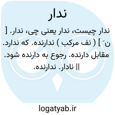 ندار. [ ن َ ] ( نف مرکب ) ندارنده. که ندارد. مقابل دارنده. رجوع به دارنده شود. || نادار. ندارنده. نادارنده. فقیر. تهیدست. بی بضاعت. ارزانی. بی نوا. مقابل دارنده و دارا.