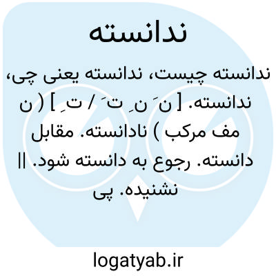 ندانسته. [ ن َ ن ِ ت َ / ت ِ ] ( ن مف مرکب ) نادانسته. مقابل دانسته. رجوع به دانسته شود. || نشنیده. پی نبرده. نفهمیده: