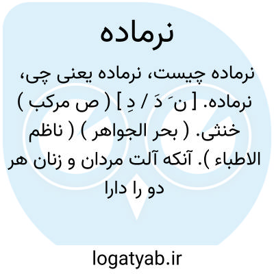 نرماده. [ ن َ دَ / دِ ] ( ص مرکب ) خنثی. ( بحر الجواهر ) ( ناظم الاطباء ). آنکه آلت مردان و زنان هر دو را دارا باشد. ( ناظم الاطباء ):
