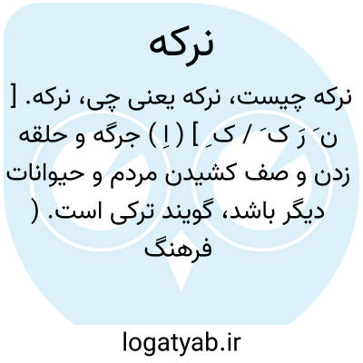 نرکه. [ ن َ رَ ک َ / ک ِ ] ( اِ ) جرگه و حلقه زدن و صف کشیدن مردم و حیوانات دیگر باشد، گویند ترکی است. ( فرهنگ نظام از فرهنگ وصاف ). رجوع به نرگ و نرگه شود.