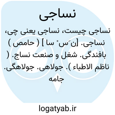 ۱ - شغل وعمل نساج نساجت ( هنربافندگی ) ۲ - ( اسم ) مالیات نساجی یاخمس نساجی.مالیات بیست درصدی که درقدیم بدستگاههای دستی نساجی تعلق میگرفت.