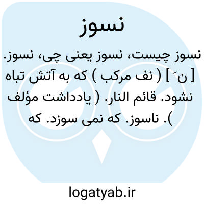 (صفت ) آنچه که درجوار آتش نسوزد آنچه که درمقابل حرارت مقاومت کند: آجرنسوزپبه نسوزصندوق نسوز.یاصندوق نسوز.صندوق آهنی که محتوی آن درمقابل حریق مصونیت دارد.