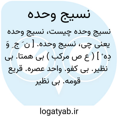 نسیج وحده. [ ن َ ج ِ وَ دِه ْ ] ( ع ص مرکب ) بی همتا. بی نظیر. بی کفو. واحد عصره. قریع قومه. بی نظیر در علم و جز آن. بی قرین. تک بافت. یگانه روزگار. که قالب نقش او را یک بار به کار برده و سپس شکسته و تباه کرده باشند. ( یادداشت مؤلف ):