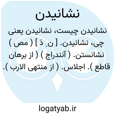 ( مصدر ) ۱ - به نشستن وا داشتن: چه شادی ازین به که در بزم عشرت نشینی و ساقی برابر نشانی ? ( وحشی بافقی ) ۲- جلوس دادن (بر تخت سلطنت ):...بر کیارق برادر سنجر را بخراسان بپادشاهی نشاند... ۳ - جا دادن مقیم ساختن: به مرو شاهجان بر هر دروازه صد نفر حامی نشانده بودند. ۴ - بخانه آوردن زنی روسپی و بدکاره و باز داشتن او از عمل خویش و خرجی دادن بدو و وی را در انحصار خود داشتن بی آنکه عقد ازدواج دایم یا منقطعی صورت گیرد. ۵ - کاشتن غرس کردن:... و نهال خرما را که از جایی بر آرند و بجای دیگر بنشانند.. ۶ - برپا داشتن نصب کردن افراشتن. ۷ - نهاندن. ۸ - خاموش کردن ( آتش ). ۹ - دفع کردن آرام کردن ( درد الم ): و دردهای چشم و گوش بنشاند ( لبن شیر )