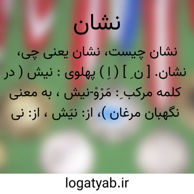نشان. [ ن ِ ] ( اِ ) پهلوی: نیش ( در کلمه مرکب ِ: مَرْوْ-نیش، به معنی نگهبان مرغان )، از: نیَش، از: نی اَش.در اوراق مانوی ِ تورفان: نیشند = نیه شاند ( خواهنددید )، یهودی -فارسی: نی شیدن، و در لهجه ها: نیش ( نگاه کردن )، ایرانی میانه: نیشان، فارسی: نشان، ارمنی عاریتی و دخیل: نیش، از: نیش و نشَن، از: نیشان ( علامت، نشان )، کردی: نیشان، نیشی ( علامت، نشانه ).( از حاشیه برهان قاطع چ معین ). علامت. ( برهان قاطع )( جهانگیری ) ( از انجمن آرا ) ( ناظم الاطباء ). نشانی. علامتی که بدان کسی یا چیزی را بازشناسند: