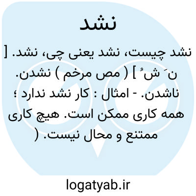 نشد. [ ن َ ] ( ع مص ) جستن گمشده را. ( آنندراج ). طلب کردن و جستن گمشده را. ( از ناظم الاطباء ) ( از المنجد ). نشدة. نشدان. ( منتهی الارب ) ( اقرب الموارد ) ( المنجد ). || تعریف نمودن [ گمشده را ]. ( آنندراج ). تعریف کردن [ گمشده را ]. ( از ناظم الاطباء ) ( از اقرب الموارد ) ( از المنجد ). نشدان. نشدة. ( منتهی الارب ) ( اقرب الموارد ) ( المنجد ). || بشناختن. ( آنندراج ) ( از ناظم الاطباء ) ( از اقرب الموارد ) ( از المنجد ). || سوگند دادن به خدا. ( آنندراج ) ( از ناظم الاطباء ) ( از المنجد ). سوگند بردادن. ( تاج المصادر بیهقی ). || نشدتک اﷲ گفتن کسی را؛ یعنی به خدای می پرسم ترا، چنانکه گوئی فرایاد او می آوری. ( از آنندراج ) ( از منتهی الارب ) ( از ناظم الاطباء ). || در تداول عرب: مدح. ( از المنجد ).