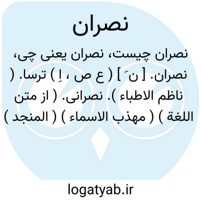 نصران. [ ن َ ] ( ع ص، اِ ) ترسا. ( ناظم الاطباء ). نصرانی. ( از متن اللغة ) ( مهذب الاسماء ) ( المنجد ) ( از اقرب الموارد ). مرد ترسا. ( دهار ) ( مهذب الاسماء ). واحد نصاری است. ( از متن اللغة ). رجوع به نصرانی و نصاری شود.