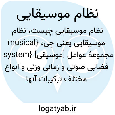 {musical system} [موسیقی] مجموعۀ عوامل فضایی صوتی و زمانی وزنی و انواع مختلف ترکیبات آنها که در هر فرهنگ، کلیت موسیقایی منسجم و خاصی ایجاد می کند
