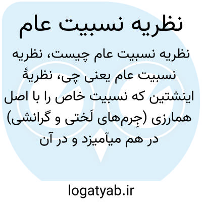 نظریۀ اینشتین که نسبیت خاص را با اصل هم‏ارزی (جِرم‌های لَختی و گرانشی) در هم می‏آمیزد و در آن نظریه، رویدادها در فضای خمیده رخ می‏دهند.