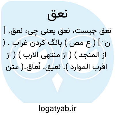 نعق. [ ن َ ] ( ع مص ) بانگ کردن غراب. ( از المنجد ) ( از منتهی الارب ) ( از اقرب الموارد ). نعیق. نُعاق.( متن اللغة ) ( اقرب الموارد ). || بانگ کردن شبان گوسفندان خود را و زجر نمودن. ( از منتهی الارب ) ( از اقرب الموارد ) ( از ناظم الاطباء ) ( از متن اللغة ). بانگ بر گوسفند زدن. ( تاج المصادر بیهقی ) ( زوزنی ). نعیق. نُعاق. نَعَقان. ( اقرب الموارد ) ( متن اللغة )( منتهی الارب ). || بانگ برداشتن مؤذن به اذان. به بانگ بلند اذان گفتن. ( از اقرب الموارد ).