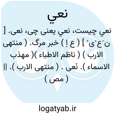 نعی. [ ن َ عی ی ] ( ع اِ ) خبر مرگ. نَعْی ْ. ( منتهی الارب ) ( آنندراج ). رجوع به نَعْی ْ شود. || ( ص ) خبر مرگ آرنده. ( منتهی الارب ) ( آنندراج ) ( از اقرب الموارد ). ناعی. ( اقرب الموارد ). خبر مرگ دهنده. || خبر مرگ داده شده. ( ناظم الاطباء ). || ( مص ) نَعْی ْ. نُعیان. رجوع به نَعْی ْ شود.