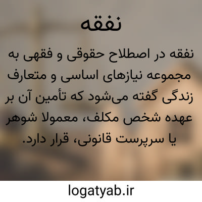 [ویکی فقه] نفقه (فقه). نفقه در لغت، به معنای هزینه و خرجی است و در اصطلاح، عبارت است از مالی که برای ادامه زندگی، صرف مخارج ضروری همسر و فرزندان، خویشاوندان و مانند آنها میشود؛ اعم از خوراک، پوشاک، مسکن و غیره.
