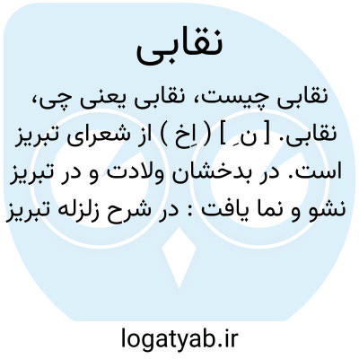 نقابی. [ ن ِ ] ( اِخ ) از شعرای تبریز است. در بدخشان ولادت و در تبریز نشو و نما یافت: در شرح زلزله تبریز مثنوی سروده است: