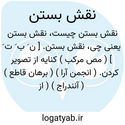 نقش بستن. [ ن َ ب َ ت َ ] ( مص مرکب ) کنایه از تصویر کردن. ( انجمن آرا ) ( برهان قاطع ) ( آنندراج ) ( از ناظم الاطباء ). نقاشی کردن. نقش کشیدن. صورتگری کردن. رسم کردن. نگاشتن: