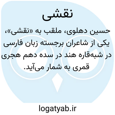 نقشی. [ ن َ ] ( اِخ ) حسین دهلوی ( مولانا... )، متخلص به نقشی. از پارسی گویان قرن دهم هندوستان است.به سال 988 یا 989 هَ. ق. درگذشته است. او راست: