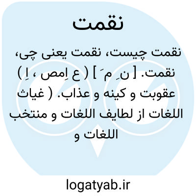 (اسم ) ۱ - عتاب معاتبه. ۲ - انتقام کینه کشی پاداش به عقوبت: و بسیار دشمنانند که بقوت و زور بریشان دست نتوان یافت. و بحیلت و مکر در قبضه قدرت و چنگال نقمت توان کشید. جمع: نقم نقم و نقمات.