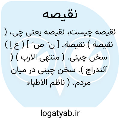 ( نقیصة ) نقیصة. [ ن َ ص َ ] ( ع اِ ) سخن چینی. ( منتهی الارب ) ( آنندراج ). سخن چینی در میان مردم. ( ناظم الاطباء ). وقیعة. ( از اقرب الموارد ). || عیب. ( منتهی الارب ) ( آنندراج ) ( ناظم الاطباء ) ( اقرب الموارد ). || خوی زشت یا سست. ( منتهی الارب ) ( آنندراج ). خصلت بد و سست و زشت خوئی. ( ناظم الاطباء ). خصلة دنیئة و ضعیفة. ( از اقرب الموارد ). خصلتی پست در آدمی. ( یادداشت مؤلف ). ج، نقائص.