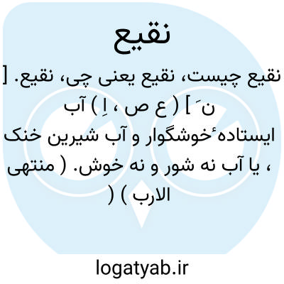 ( اسم ) ۱ - چاه بسیار آب. ۲ - آب ایستاده. ۳ - آب سرد و گوارا. ۴ - آب میوه خشک که آنرا خیسانیده باشند: نقیع آلو. ۵ - شیر خالص. ۶ - ماست. ۷ - بانگ و فریاد. ۸ - شرابی که از مویز سازند.