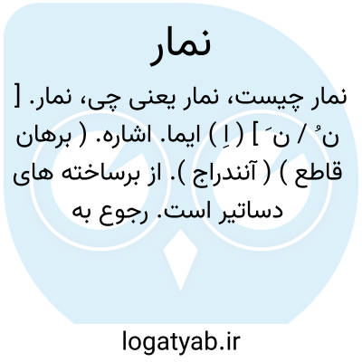 نمار. [ ن ُ / ن َ ] ( اِ ) ایما. اشاره. ( برهان قاطع ) ( آنندراج ). از برساخته های دساتیر است. رجوع به فرهنگ دساتیر ص 270 شود.