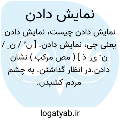 نمایش دادن. [ ن ُ / ن ِ / ن َ ی ِ دَ ] ( مص مرکب ) نشان دادن.در انظار گذاشتن. به چشم مردم کشیدن. تظاهر کردن.