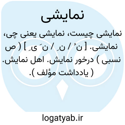 نمایشی. [ ن ُ / ن ِ / ن َ ی ِ ] ( ص نسبی ) درخور نمایش. اهل نمایش. ( یادداشت مؤلف ).