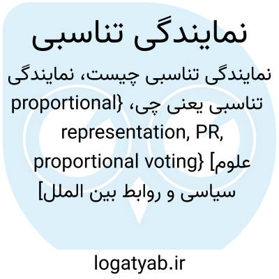 {proportional representation, PR, proportional voting} [علوم سیاسی و روابط بین الملل] نوعی نظام انتخاباتی در کشورهای چندحزبی که بر طبق آن هر حزب به نسبت تعداد آرایی که کسب می کند صاحب کرسی می شود