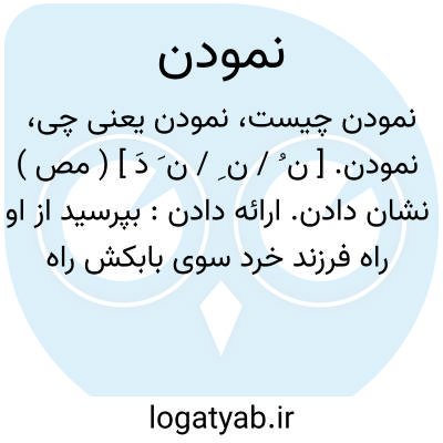 وآنهمه دعوی را معنی بنمودی.منوچهری.اگر به راندن تاریخ این پادشاه مشغول گردند تیر بر نشانه زنند و به مردمان نمایند که ایشان سوارانند و من پیاده. ( تاریخ بیهقی ص 103 ). یک چندان میدان خالی یافتند و... ایشان را زبون گرفتند، بدیشان نمایند پهنای گلیم تا بیدار شوند از خواب. ( تاریخ بیهقی ص 163 ). اما خود بر آن راه که نموده است نرود. ( تاریخ بیهقی ص 98 ).
