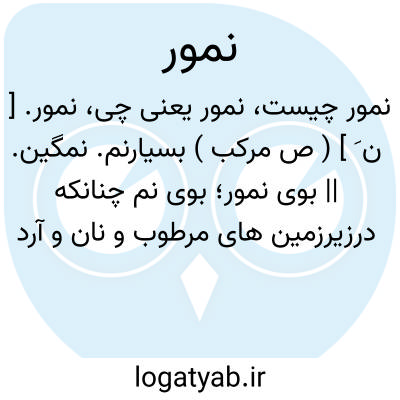 نمور. [ ن َ ] ( ص مرکب ) بسیارنم. نمگین. || بوی نمور؛ بوی نم چنانکه درزیرزمین های مرطوب و نان و آرد مانده در رطوبت و کپره زده. از نم به معنی ندا و «َ-ور» به معنی دارنده و «َ-ور» از قبیل گنجور و رنجور و دستور. ( از یادداشت مؤلف ). || جای نم دار. ( از یادداشت مؤلف ). نمناک. نمدار. نموک. مرطوب. ( فرهنگ فارسی معین ).