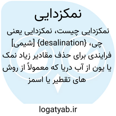 {desalination} [شیمی] فرایندی برای حذف مقادیر زیاد نمک یا یون از آب دریا که معمولاً از روش های تقطیر یا اسمز معکوس برای این کار استفاده می شود