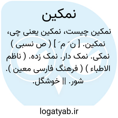 (صفت ) منسوب به نمک:۱- نمک زدهنمکدار. ۲- شخص با ملاحتملیح: جدی ( دلالت کند بر ) راست قد... و سبکرو و نمکین. ۳ - ادا واطوار و حرکات ملیح: نگار من چو دراید بخنده نمکین نمک زیاده کند بر جراحت ریشان. ( گلستان.فروغی. ۱۳۳ )