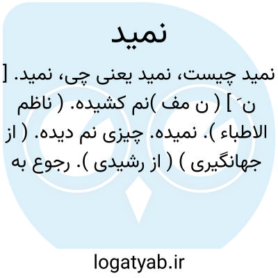 نمید. [ ن َ ] ( ن مف )نم کشیده. ( ناظم الاطباء ). نمیده. چیزی نم دیده. ( از جهانگیری ) ( از رشیدی ). رجوع به نمیده شود. || ( اِمص ) حاصل مصدر از نمیدن است. ( ناظم الاطباء ).