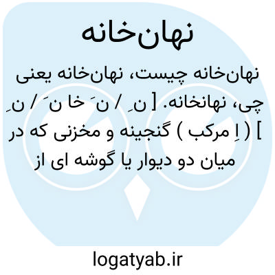 ( اسم ) ۱ - مخزنی که در میان دو دیوار یا گوشه ای از خانه سازند بجهت ذخیر. غلات و غیره: ( روزی طلب کنی در نهانخانهائ زمین. ) ) ۲ - خلوت خانه. ۳ - خانه ای که در زیر زمین سازند تا در فصل گرما در آنجا بیارامند: نهان دره. ۴ - جایی که در آن خاشاک و خاکروبه ریزند ۵ - مقبره گور. یا نهان خان. غیب. عالم غیب جهان باطن: (( هست رای تو که اسرار نهانخان. غیب غایبانه کند ارباب دول را اعلام. ) ) یا نهان خان. فکک ( فکرت ). مخزن اندیشه مخفی گاه افکار: (( دانای آشکار و نهان داند که از نهانخان. فکرت هیچ صاحب سخن متاعی دربار خود نبستم. ) ) یا نهان خان. قریحت ( قریحه ). مخزن قریح. شعر: ((این دو بیت از نهانخان. قریحت بعرص. بیاض فرستاد. ) )