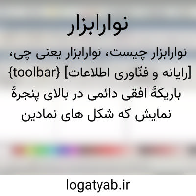 {toolbar} [رایانه و فنّاوری اطلاعات] باریکۀ افقی دائمی در بالای پنجرۀ نمایش که شکل های نمادین ابزارهای نرم افزاری در آن قرار دارد