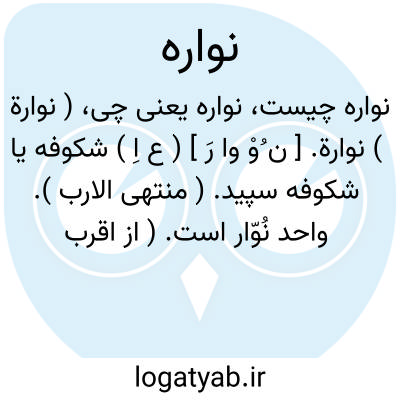 ( نوارة ) نوارة. [ ن ُوْ وا رَ ] ( ع اِ ) شکوفه یا شکوفه سپید. ( منتهی الارب ). واحد نُوّار است. ( از اقرب الموارد ). رجوع به نُوّار شود.