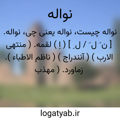 نواله. [ ن َ ل َ / ل ِ ] ( اِ ) لقمه. ( منتهی الارب ) ( آنندراج ) ( ناظم الاطباء ). زماورد. ( مهذب الاسماء ) ( دهار ). زلة. ( زمخشری ). بزماورد. میسر. تکه. توشه. ( یادداشت مؤلف ). لقمه خوراکی برای گذاشتن در دهان. ( فرهنگ فارسی معین ): ندیمان را بخواند امیر و شراب ومطربان خواست و این اعیان را به شراب بازگرفت و طبق های نواله و سنبوسه روان شد. ( تاریخ بیهقی ص 282 ).