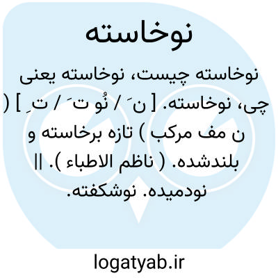 ۱- تازه برخاسته.۲- نوجوان.۳- جوان و نوچهای که مقدمات را دیده و برای عرض هنر خود در کشتی گیری بزورخانه های دیگر هم میرود: اندر عهد نوذر و زاب پهلوانی بزال رسید...اندر عهد کیقباد رستم پسر زال نوخاسته بود.اندرعهد لهراسب بازماندگان بودند از پهلوانان کیخسروو اسفندیار پسر گشتاسب نوخاسته بود. جمع: نوخاستگان.