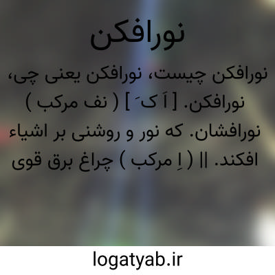 نورافکن. [ اَ ک َ ] ( نف مرکب ) نورافشان. که نور و روشنی بر اشیاء افکند. || ( اِ مرکب ) چراغ برق قوی که در سرپوش شفافی تعبیه شده و چون آن را روشن کنند به سبب شفافی و جلای سرپوش، نورش مضاعف شود و تا دوردست را روشن کند.