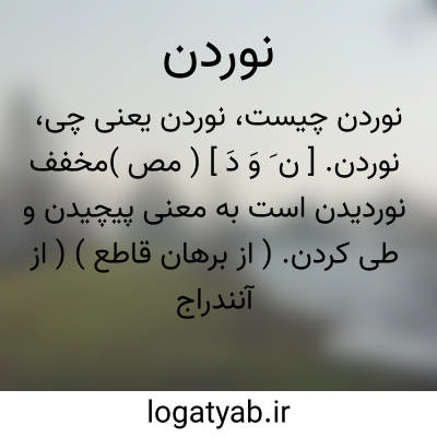 نوردن. [ ن َ وَ دَ ] ( مص )مخفف نوردیدن است به معنی پیچیدن و طی کردن. ( از برهان قاطع ) ( از آنندراج ). رجوع به نوردیدن شود. || ( اِ ) نورد. چوبی که آنچه از جامه بافته می شود بر آن پیچند. ( برهان قاطع ) ( آنندراج ):