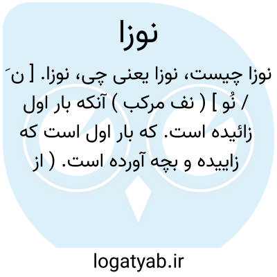 نوزا. [ ن َ / نُو ] ( نف مرکب ) آنکه بار اول زائیده است. که بار اول است که زاییده و بچه آورده است. ( از یادداشت مؤلف ). || زنی که به تازگی زاییده است. که تازه فارغ شده است.