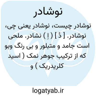 ( اسم ) ملحی است جامد و متبلور و بی رنگ و بو که از ترکیب جوهر نمک اسید کلرید ریک ) و آمونیاک بدست میاید و نام علمیش کلرور آمونیوم است. طعم نشادر زننده است و در آب گرم بخوبی حل میشود. در سفید گری و لحیم کاری مورد استعمال دارد و در صنایع مختلف و پزشکی نیز از آن استفاده میکنند: نشادر.