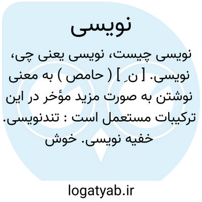 نویسی. [ ن ِ ] ( حامص ) به معنی نوشتن به صورت مزید مؤخر در این ترکیبات مستعمل است: تندنویسی. خفیه نویسی. خوش نویسی. دعانویسی. رقعه نویسی. روزنامه نویسی. رونویسی. نامه نویسی. و دیگر ترکیباتی که ذیل نویس آمده است. رجوع به هر یک از این ترکیبات در ردیف خود شود.