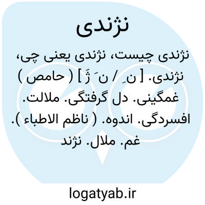 ۱ - اندوهگینی غمناکی.۲ - پژمردگی. ۳ - سرگشتگی فروماندگی: مرااین نژندی زاسکندراست کجاشاه باتخت وباافسراست. ( شا.بخ ۴ ) ۱۸۶۳:۷ - خشمگینی غضبناکی.۵ - پستی زبونی.