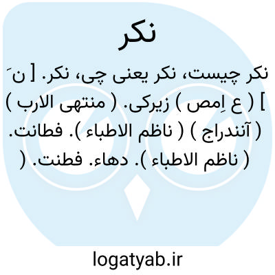 نکر. [ ن َ ] ( ع اِمص ) زیرکی. ( منتهی الارب ) ( آنندراج ) ( ناظم الاطباء ). فطانت. ( ناظم الاطباء ). دهاء. فطنت. ( اقرب الموارد ). نُکْر. ( منتهی الارب ) ( آنندراج ) ( اقرب الموارد ).