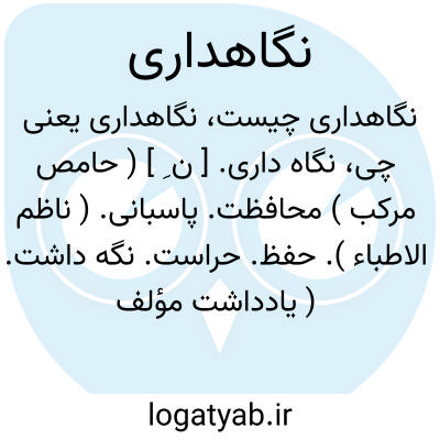 نگاه داری. [ ن ِ ] ( حامص مرکب ) محافظت. پاسبانی. ( ناظم الاطباء ). حفظ. حراست. نگه داشت. ( یادداشت مؤلف ). || پرورش. ( ناظم الاطباء ). مواظبت. ( فرهنگ فارسی معین ). مراقبت. ( ناظم الاطباء ). رجوع به نگاه داری کردن و نگه داری کردن شود.