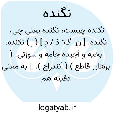 نگنده. [ ن ِ گ َ دَ / دِ ] ( اِ ) نکنده. بخیه و آجیده جامه و سوزنی. ( برهان قاطع ) ( آنندراج ). || به معنی دفینه هم گفته اند یعنی آنچه در زمین و غیره پنهان کنند، و در نسخه دیگر دفتینه نوشته بودند و آن افزاری است جولاهگان را. ( برهان قاطع ). || ( ن مف ) جامه آجیده شده. سوزنی بخیه کرده. ( از فرهنگ فارسی معین ).